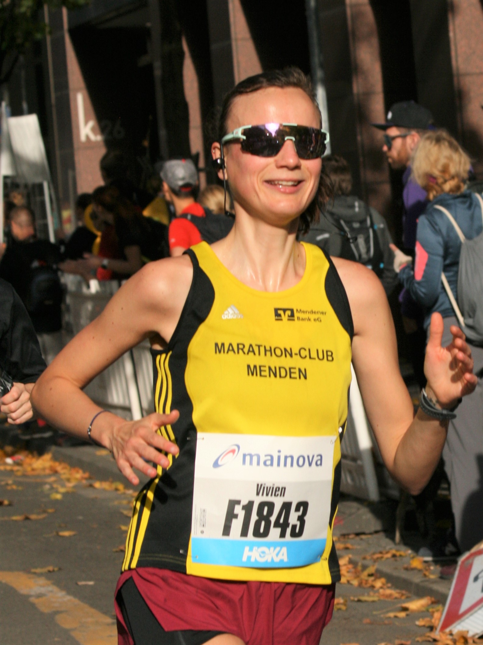 Nach den Corona bedingten Ausfällen in den letzten beiden Jahren fand in Frankfurt jetzt auch der älteste deutsche City-Marathon wieder statt. „Das Event am Ende der Marathon Saison in Deutschland lebt eigentlich von seiner flachen, schnellen Strecke und vom seinem einzigartigen Einlauf in der Frankfurter Festhalle, in der die Läufer/-innen bis zum Schluss mit Gänsehaut-Feeling in Empfang genommen werden. Viele Starter/-innen kommen dann auch nach Frankfurt, um Ende Oktober bei förderlichen Temperaturen die Marathonherausforderung zu meistern. Dieses Kalkül ist allerdings in diesem Jahr aber nicht aufgegangen. Die Temperaturen von bis zu 25 Grad in der Spitze haben die meisten Läufer/-innen wie ein Keulenschlag getroffen – und zwar von der Spitze bis zur ganzen Breite des Laufspektrums. Es war einfach zu warm, sodass an Bestzeiten eigentlich kaum zu denken war. Auch habe ich auf der Strecke noch nie so viele belastete Athleten/-innen schon von Anfang an gesehen. Ich kenne jetzt die Aussteiger Quote nicht, aber vom Eindruck muss das weit überdurchschnittlich gewesen sein!“ so MCM Coach Kasselmann. Umso mehr freut er sich über das herausragende Mannschaftsergebnis von Vivien Hölscher, Marie Christin Severin und Steffi Hardt, die mit ihrer Zeit von 10:09:16 Std. auf den dritten Platz der aktuellen Deutschen Bestenliste laufen.