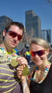 Auch Dirk Große läuft beim Hamburg Marathon in 2:42:30 Stunden deutliche neue Bestzeit. Leider verhindert ein Fehltritt mit einem umgeknickten Fuß am Ende die Zeit unter der 2:40er Schallmauer. „Man sieht, wie eng das am Ende bei den letzten Kilometer eines Marathon Rennes durch so ein Missgeschick werden kann. Einmal nicht aufgepasst und schon sind am Ende bei nur noch 3 Kilometern 5 Minuten futsch, die Dirk hierdurch verloren hat.“ sieht Kasselmann am Ende seinen Schützling mit Schmerzen im Gesicht das Renne zu Ende laufen. Anna Günnewig kämpft sich auf dem attraktiven Kurs willensstark in 4:38:32 Stunden in Ziel.